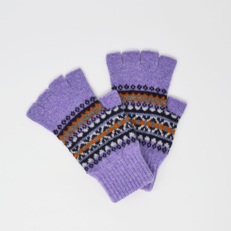 Lilac fair Isle style half finger gloves